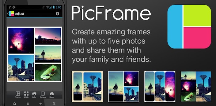 PicFrame helps you combine multiple photos into amazing looking frames and share them with your friends and