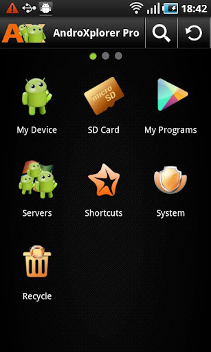 To manage your installed applications, AndroXplorer provides My Programs. This feature aggregates all installedapplications within a single folder. Tap on an application within the folder to activate, to see the properties or to get more information from the market. Options also available to uninstall and performing backup where it is applicable.